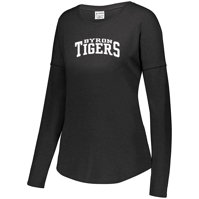 •3.8 ounce, 50% polyester/38% cotton/12% rayon tri-blend knit •Ladies' fit •Fits loose to body •Tear away label •Scoop neck •Dropped shoulder sleeves for mobility and comfort •Contoured bottom
