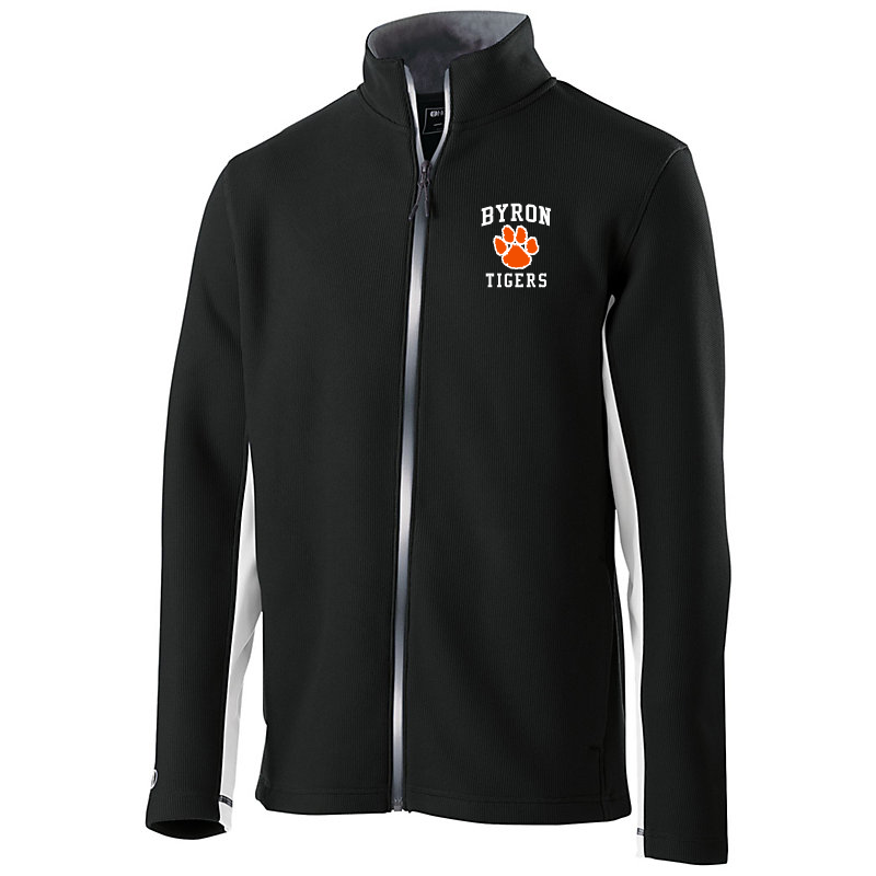 •Sweater knit bonded to microfleece, offering a Durable Water Resistant finish for weather resistance and microfleece lining for maximum warmth • Storm Dfend™ Technology features durable water-resistant finish keeps you dry while knit softshell breathes to keep you comfortable • Wik-Sof™ Dry-Excel™ inserts and sides • Woven label • Ombre gradient front zipper • Stretch woven zipper garage and storm flap • Front zippered pockets • Dual inside pockets • Contrast color inserts • Set-in sleeves • Open bottom