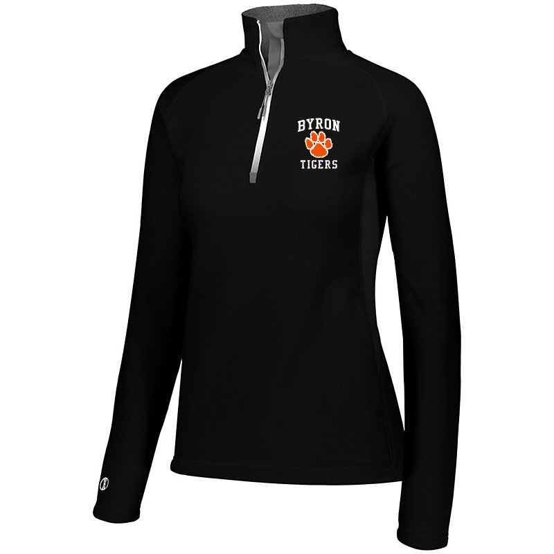 •Sweater knit bonded to microfleece, offering a Durable Water Resistant finish for weather resistance and microfleece lining for maximum warmth •Storm Dfend™ Technology features durable water resistant finish keeps you dry while knit softshell breathes to keep you comfortable •* Wik-Sof™ Dry-Excel™ performance fleece inserts •Wicks Moisture •Ladies' fit •Woven label •Half-zip pullover style with ombre gradient zipper and reflective zipper pull •Stretch woven zipper garage and storm flap •Raglan sleeves for maximum mobility •Side zippered pockets •Open bottom