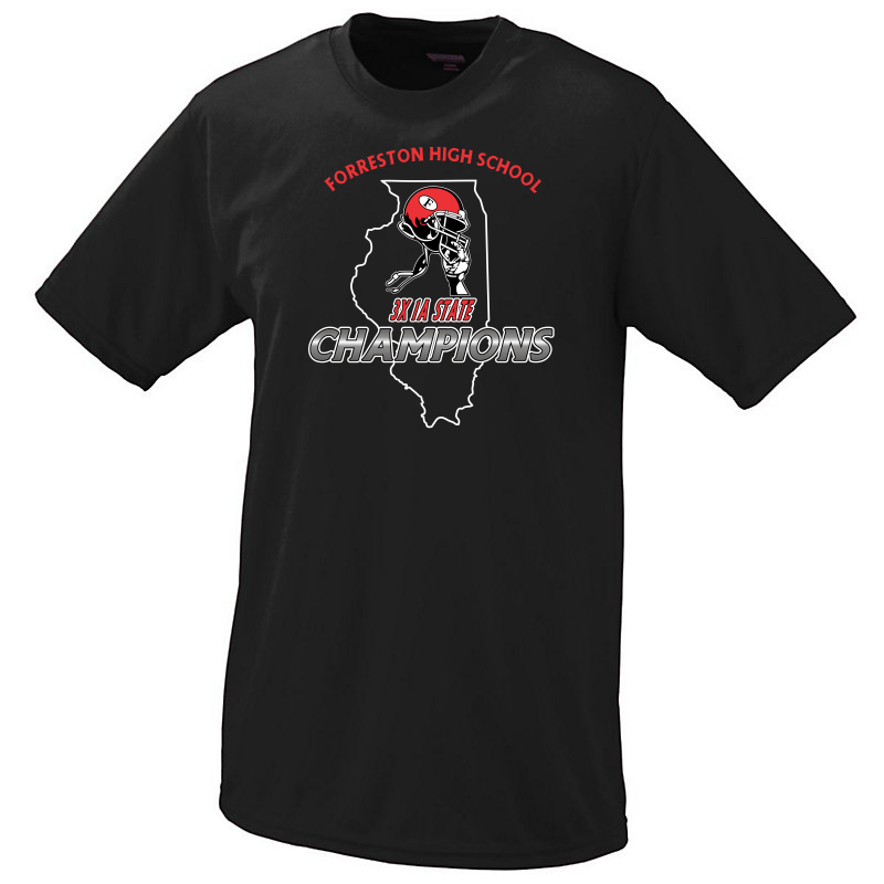 100% polyester wicking knit Wicks moisture away from the body Pad print label Self-fabric collar Set-in sleeves Full chest print design front and back