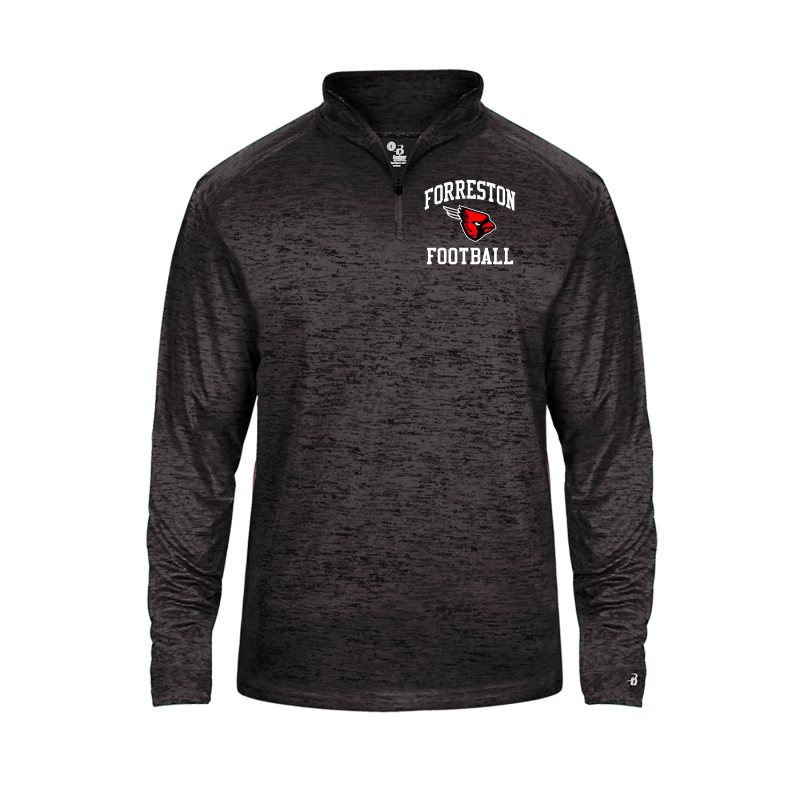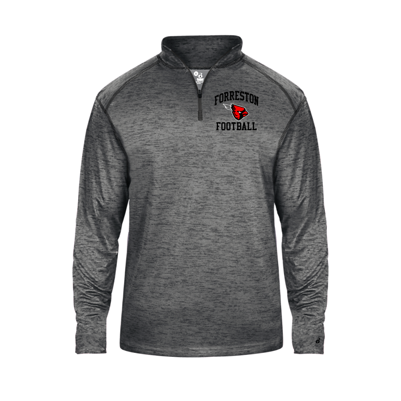 TONAL BLEND 1/4 ZIP Badger heat seal logo on left sleeve Badger sport paneled shoulder for maximum movement Double-needle hem 100% Sublimated Polyester moisture management/antimicrobial fabric Self-fabric collar with 8" locking zipper Embroidered Logo Left Chest