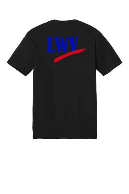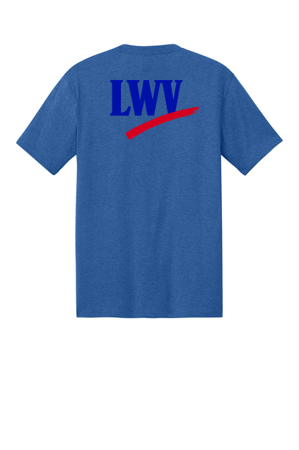 Three yarns form a perfect easygoing look. 4.5-ounce (153 GSM) 50/25/25 polyester/combed ring spun cotton/rayon, 32 singles 1x1 rib knit neck Tear-away label Shoulder to shoulder taping Printed left chest logo and full back logo
